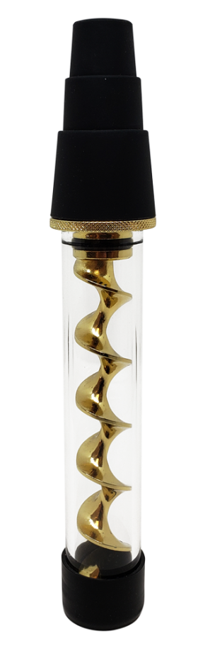 The spiral goes inside the glass tube and used as a screw for pushing the weed down, make sure that the device is filled compactly.